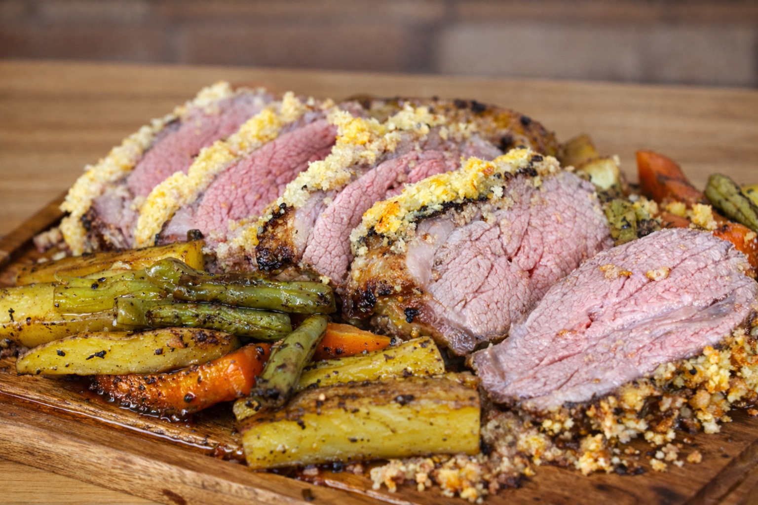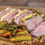 Maminha no forno com crosta de alho e legumes: carne suculenta, prática e com cara de churrasco