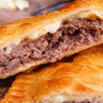 Aprenda a fazer hambúrguer de pastel com queijo camembert. Massa crocante por fora, carne suculenta…