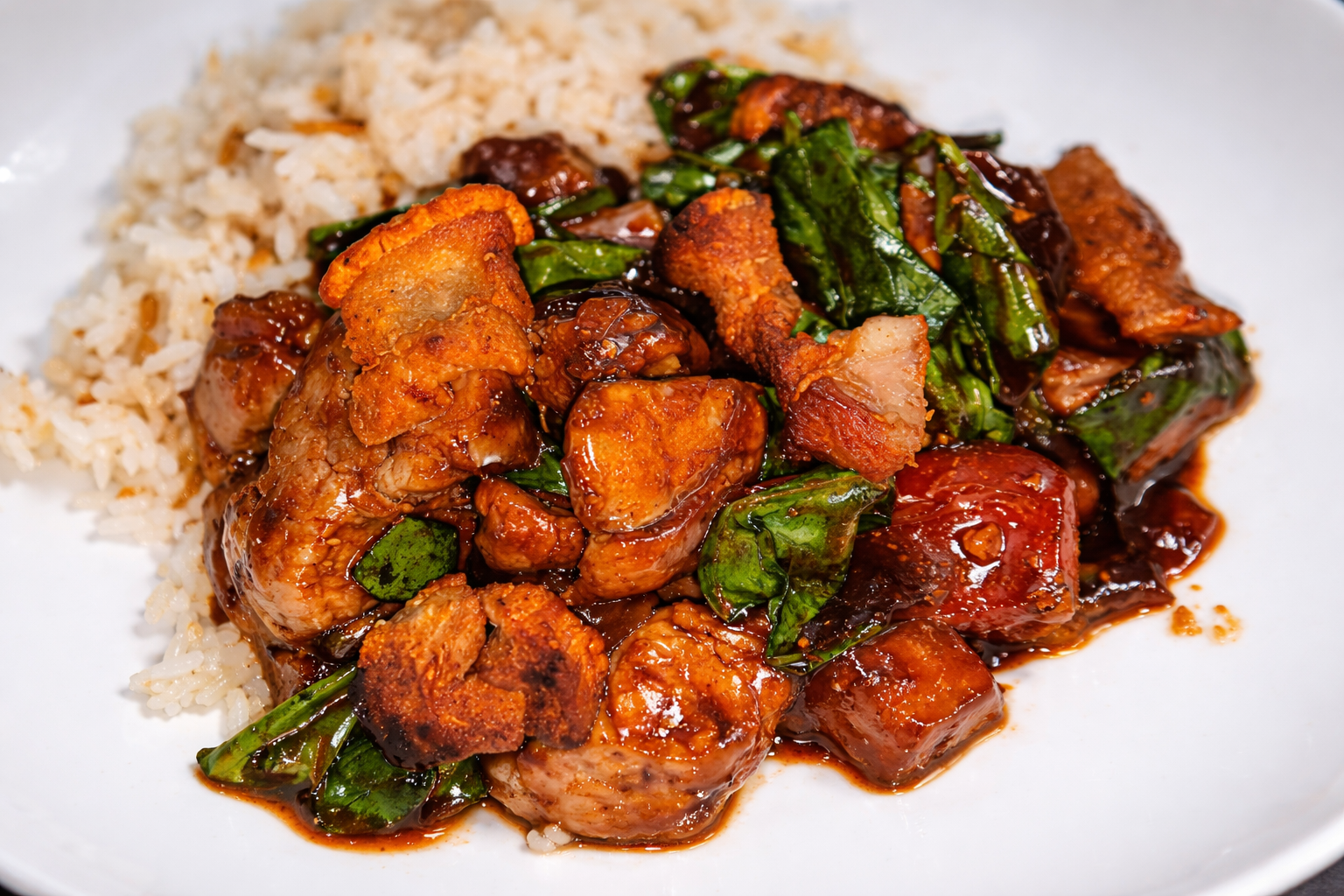 Picadinho de Pernil Suíno ao Estilo Oriental com Abacaxi