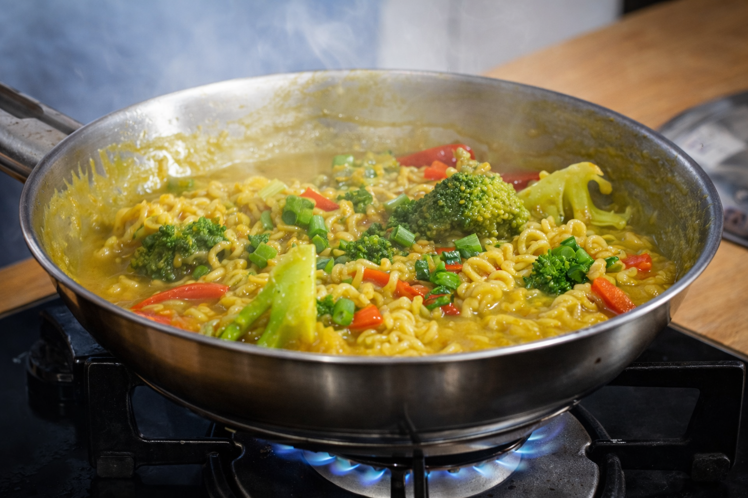 Aprenda como fazer miojo ao curry com leite de coco, brócolis e pimentão. Receita rápida,…