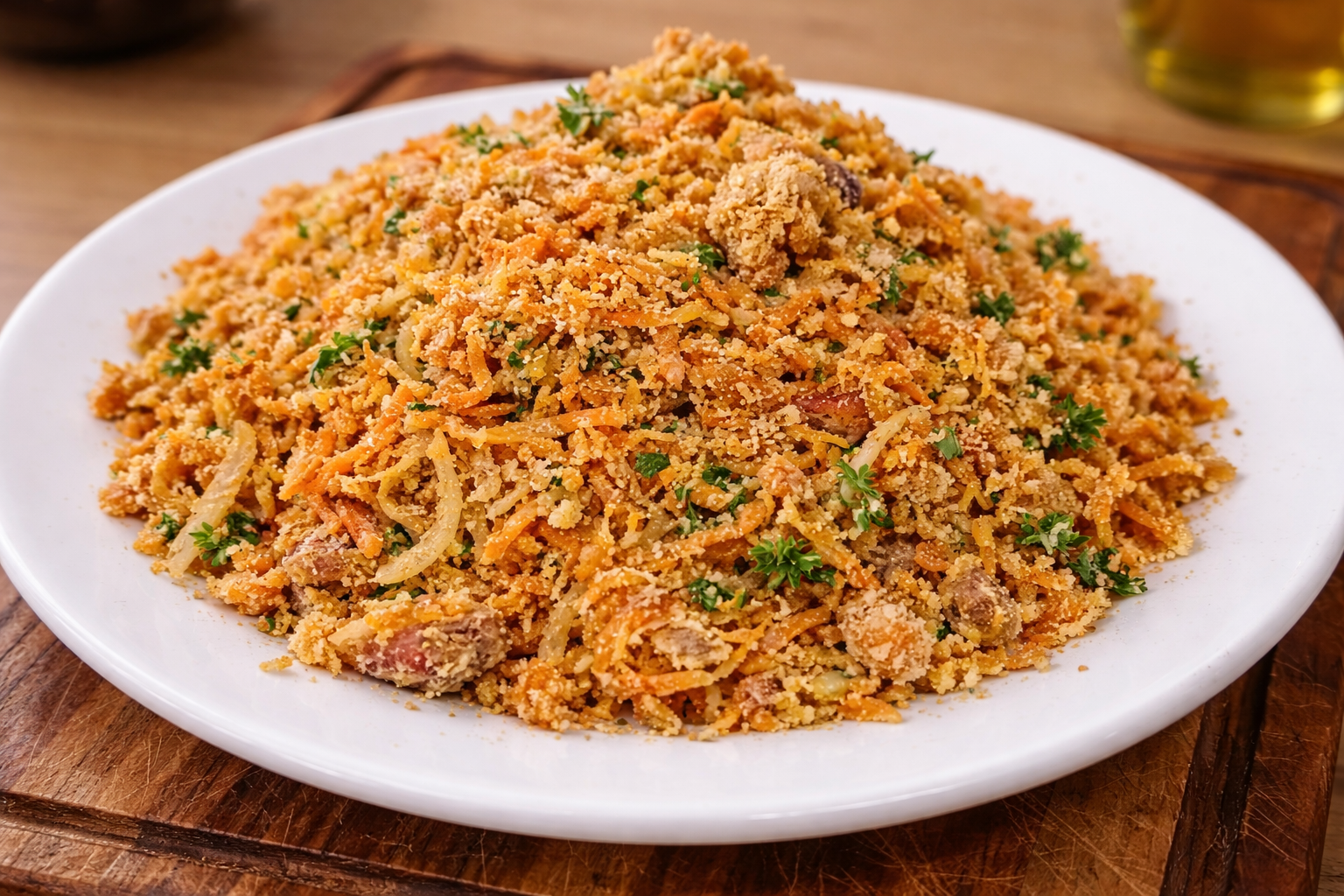 💡 Dica do Chef: essa farofa traz textura e contraste ao prato.